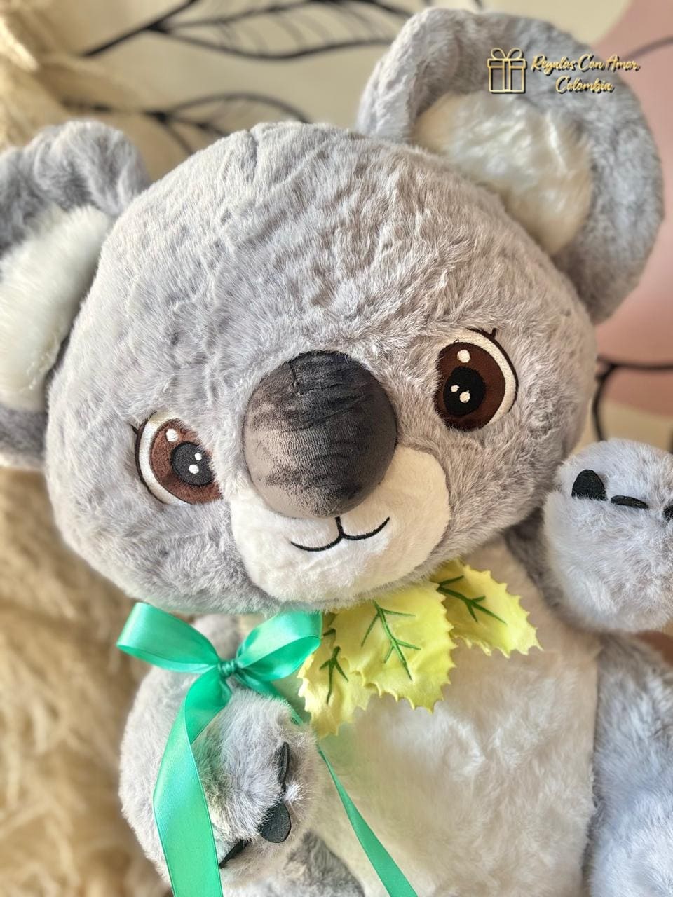 Sorprende con un hermoso peluche koala de 50cm material suave, acompañado de dos globos con helio (duración 8 horas), moño en cinta de tela y tarjeta dedicatoria con el mensaje que nos envies.